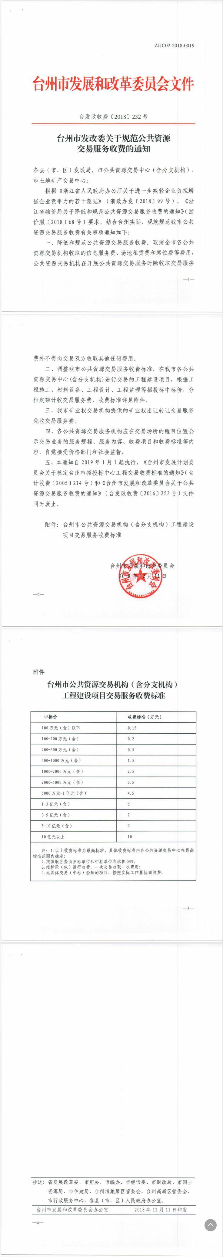 台州市发改委关于规范公共资源交易服务收费的通知